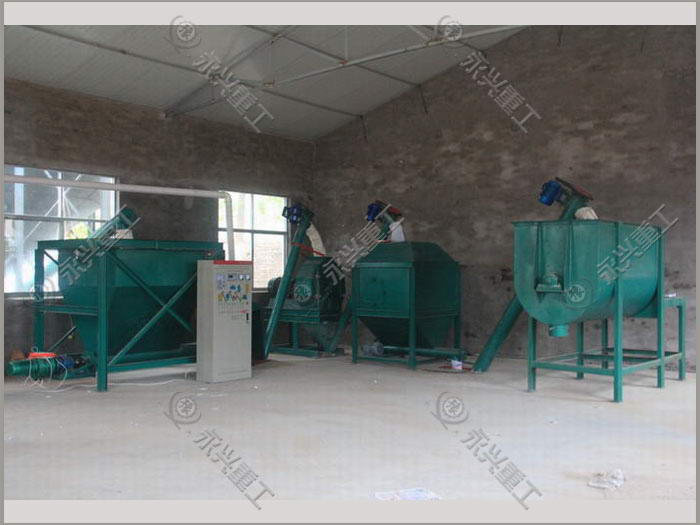 混合机一般选用单轴双螺带混合机和双轴桨叶混合机,产量在8吨以下可选用单轴双螺带混合机,产量在8吨以上一般选用双轴桨叶混合机。