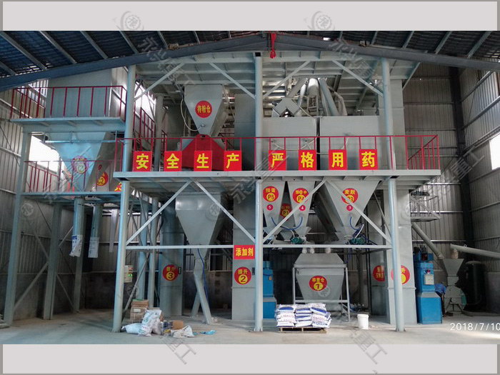 2.工艺流程由投料、配料、输送、粉碎、提升、混合、包装等工序组成。工艺流程连续合理,各单机性能良好,操作维护方便。
